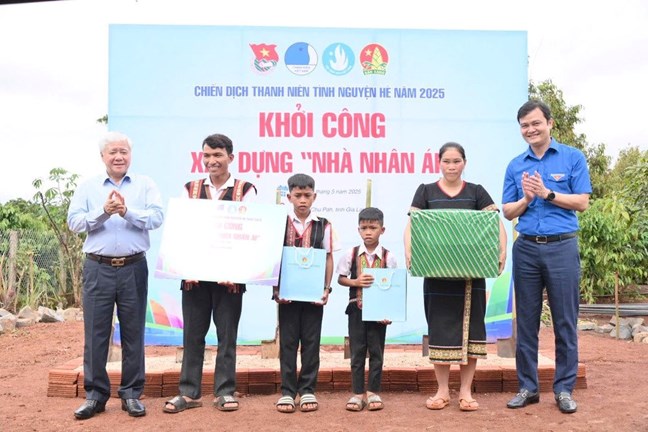 (Mặt trận) - Chiều 30-5, Trung ương Đoàn TNCS Hồ Chí Minh-Trung ương Hội Liên hiệp thanh niên Việt Nam-Trung ương Hội Sinh viên Việt Nam-Hội Đồng Đội Trung ương tổ chức lễ khởi công nhà nhân ái cho thiếu nhi ở làng Mun (thị trấn Ia Ly, huyện Chư Păh, tỉnh Gia Lai).