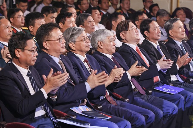 | Ông Đỗ Văn Chiến, Ủy viên Bộ Chính trị, Bí thư Trung ương Đảng, Chủ tịch UBTƯ MTTQ Việt Nam, Chủ tịch danh dự Quỹ VIFOTEC và các đại biểu dự Lễ trao giải. Ảnh: Quang Vinh |
