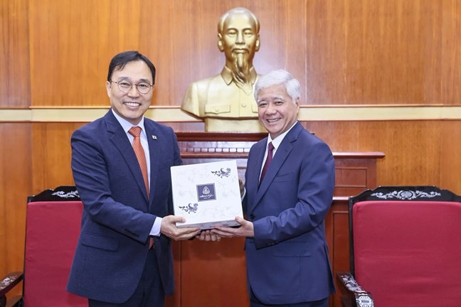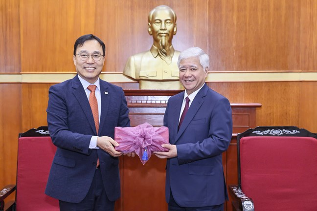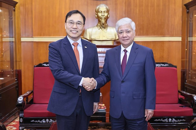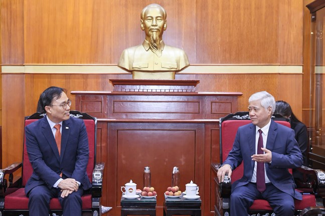 | Ông Đỗ Văn Chiến, Ủy viên Bộ Chính trị, Bí thư Trung ương Đảng, Chủ tịch Ủy ban Trung ương MTTQ Việt Nam tiếp Đại sứ đặc mệnh toàn quyền Hàn Quốc tại Việt Nam Choi Youngsam |
