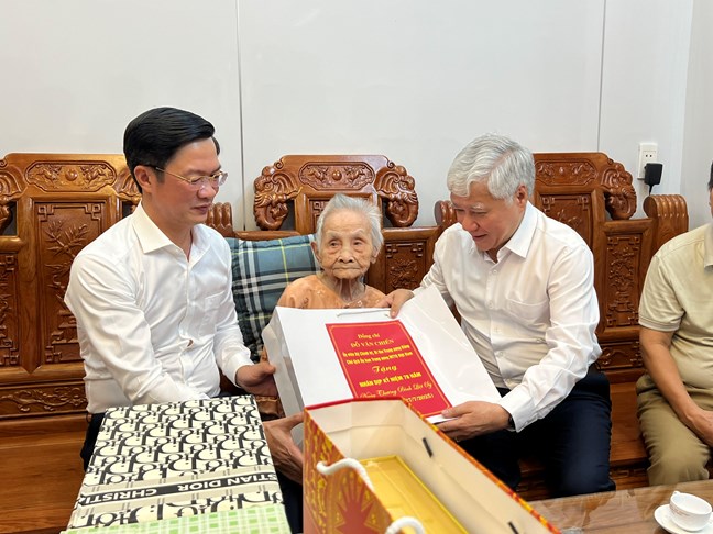 Thay mặt lãnh đạo Đảng, Nhà nước, MTTQ Việt Nam, Chủ tịch Đỗ Văn Chiến đã gửi tặng món quà tri ân đến Mẹ Dấng và chúc Mẹ Dấng luôn có thật nhiều sức khỏe, an hưởng tuổi già bên gia đình, con cháu.