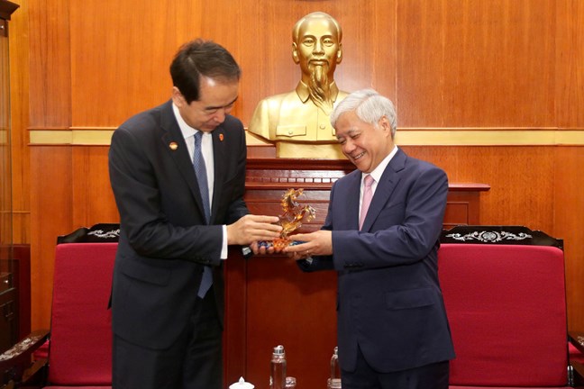 | Đồng chí Đỗ Văn Chiến, Ủy viên Bộ Chính trị, Bí thư Trung ương Đảng, Chủ tịch Ủy ban Trung ương MTTQ Việt Nam tiếp đồng chí Hà Vĩ, Đại sứ Trung Quốc tại Việt Nam |