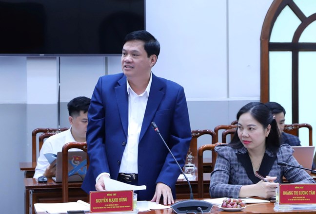 | Ông Nguyễn Mạnh Hùng, Phó Chủ tịch Thường trực Ủy ban MTTQ Việt Nam tỉnh Sơn La trình bày báo cáo tại cuộc làm việc |