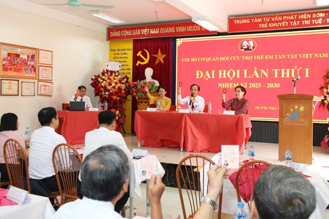 Đại hội Chi bộ Cơ quan Hội Cứu trợ trẻ em tàn tật Việt Nam lần thứ I, nhiệm kỳ 2025-2030 có nhiệm vụ tổng kết việc thực hiện nhiệm vụ của Hội giai đoạn 2020-2025, đánh giá ưu điểm, khuyết điểm, nguyên nhân chủ quan, khách quan, rút ra bài học kinh nghiệm trong quá trình tổ chức thực hiện và đề ra phương hướng nhiệm vụ, biện pháp tổ chức thực hiện Nghị quyết Đại hội Chi bộ Cơ quan Hội.