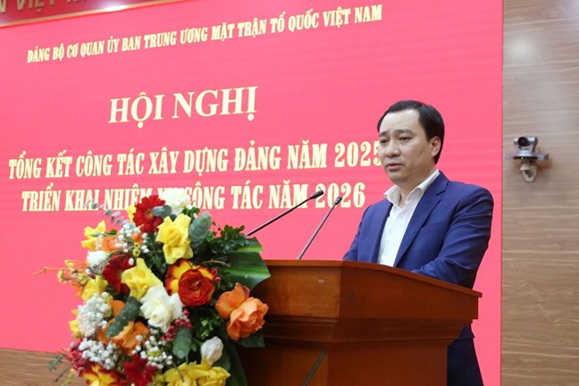 Tại Hội nghị tổng kết công tác xây dựng Đảng năm 2025, triển khai nhiệm vụ năm 2026, các đại biểu đã được nghe trình bày báo cáo kết quả công tác năm 2025, nhiệm vụ trọng tâm 2026 của Đảng bộ Cơ quan UBTƯ MTTQ Việt Nam; báo cáo kết quả công tác kiểm tra, giám sát và thi hành kỷ luật Đảng năm 2025, nhiệm vụ trọng tâm năm 2026 của Đảng bộ Cơ quan UBTƯ MTTQ Việt Nam.
