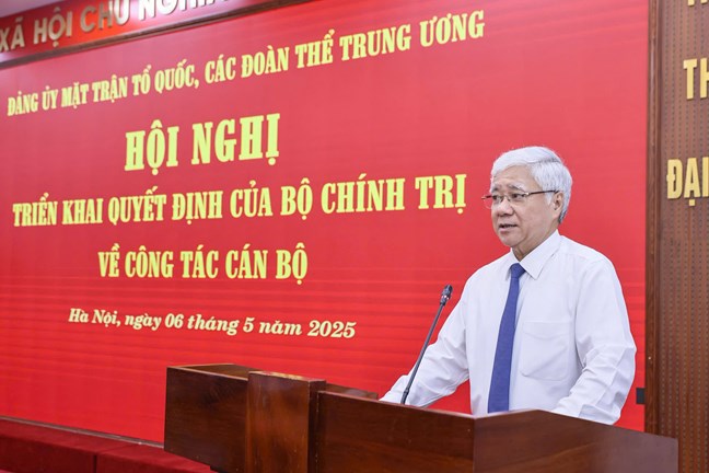 (Mặt trận) - Chiều 6/5, tại Hà Nội, Đảng ủy Mặt trận Tổ quốc, các đoàn thể Trung ương tổ chức Hội nghị triển khai quyết định của Bộ Chính trị về công tác cán bộ. Ông Đỗ Văn Chiến, Ủy viên Bộ Chính trị, Bí thư Trung ương Đảng, Bí thư Đảng ủy Mặt trận Tổ quốc, các đoàn thể Trung ương, Chủ tịch Ủy ban Trung ương Mặt trận Tổ quốc Việt Nam chủ trì Hội nghị.