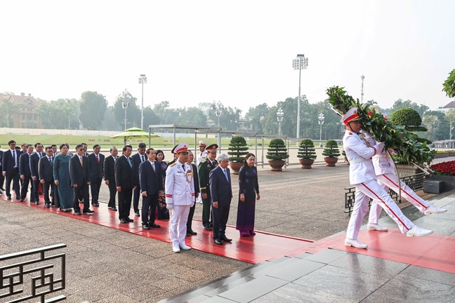 | Ủy viên Bộ Chính trị, Bí thư Trung ương Đảng, Bí thư Đảng ủy MTTQ, các đoàn thể Trung ương, Chủ tịch UBTƯ MTTQ Việt Nam Đỗ Văn Chiến cùng Đoàn đại biểu Đảng bộ MTTQ, các đoàn thể Trung ương vào Lăng viếng Chủ tịch Hồ Chí Minh. Ảnh: Quang Vinh. |