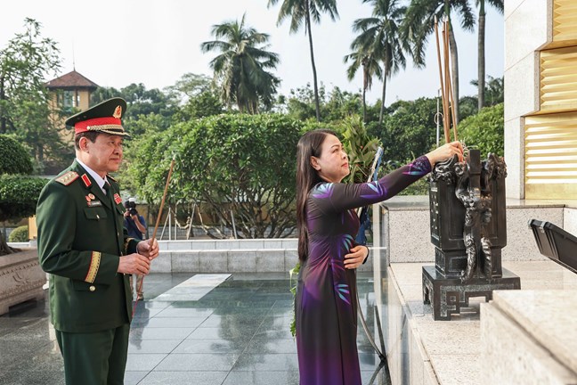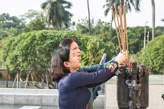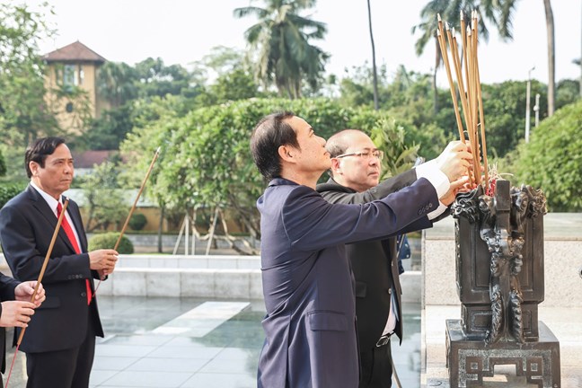 Sau lễ đặt vòng hoa, vào lăng viếng Chủ tịch Hồ Chí Minh, đoàn đại biểu đã dâng hương, dâng hoa tại Đài tưởng niệm các anh hùng liệt sĩ Bắc Sơn.