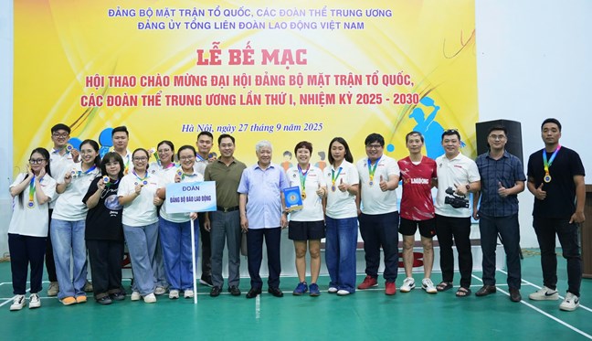 (Mặt trận) - Chiều 27.9, Đảng ủy Tổng Liên đoàn Lao động Việt Nam tổ chức lễ bế mạc hội thao chào mừng Đại hội Đảng bộ Mặt trận Tổ quốc (MTTQ), các đoàn thể Trung ương lần thứ I, nhiệm kỳ 2025-2030.