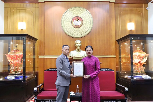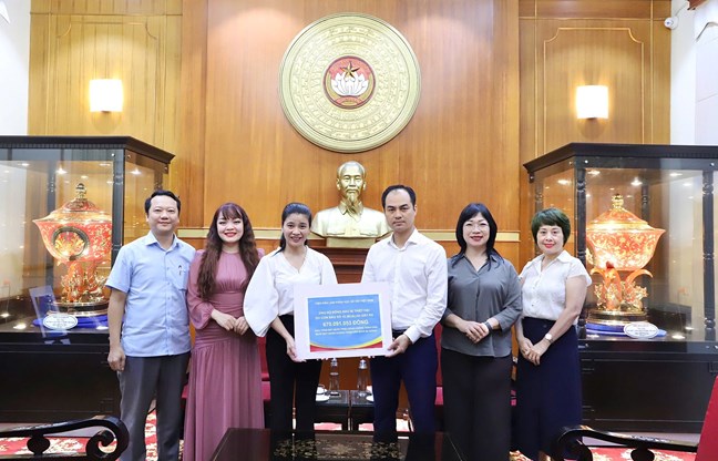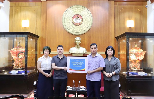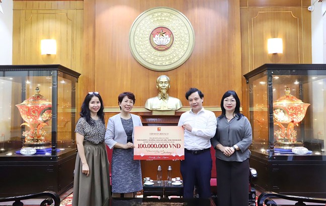 | Bà Hà Thị Nga, Uỷ viên Trung ương Đảng, Phó Chủ tịch Uỷ ban Trung ương MTTQ Việt Nam đã tiếp nhận từ Ngân hàng Hợp tác xã Việt Nam (Co-op Bank) |