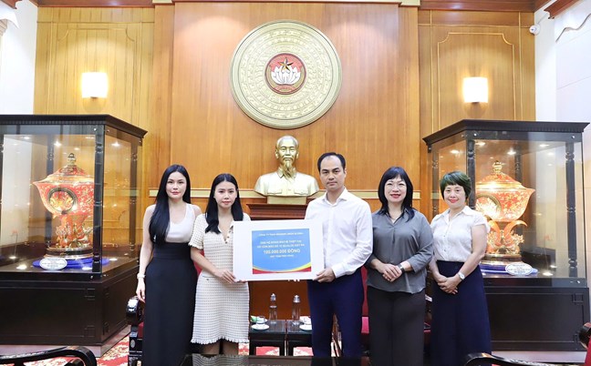 | Bà Hà Thị Nga, Uỷ viên Trung ương Đảng, Phó Chủ tịch Uỷ ban Trung ương MTTQ Việt Nam đã tiếp nhận từ Công ty TNHH Đầu tư và Phát triển DB (Ecopark) số tiền 15 tỷ đồng |