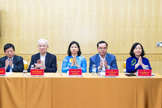 | Bà Bùi Thị Minh Hoài, Ủy viên Bộ Chính trị, Bí thư Trung ương Đảng, Bí thư Đảng ủy MTTQ, các đoàn thể Trung ương cùng đại biểu tham dự Hội nghị |