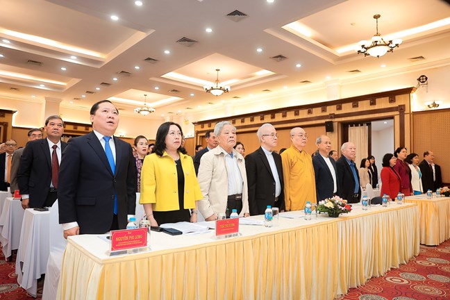 Chủ trì Hội nghị có bà Hà Thị Nga - Ủy viên Trung ương Đảng, Phó Bí thư Thường trực Đảng ủy MTTQ, các đoàn thể Trung ương, Phó Chủ tịch UBTƯ MTTQ Việt Nam; bà Nguyễn Thị Tuyến - Ủy viên Trung ương Đảng, Phó Chủ tịch UBTƯ MTTQ Việt Nam, Chủ tịch Trung ương Hội Liên hiệp phụ nữ Việt Nam; Thượng tướng Bế Xuân Trường - nguyên Uỷ viên Trung ương Đảng, Phó Chủ tịch UBTƯ MTTQ Việt Nam, Chủ tịch Trung ương Hội Cựu chiến binh Việt Nam; ông Bùi Quang Huy - Ủy viên dự khuyết Trung ương Đảng, Phó Chủ tịch UBTƯ MTTQ Việt Nam, Bí thư thứ nhất Trung ương Đoàn TNCS Hồ Chí Minh; ông Hoàng Công Thủy, Phó Chủ tịch UBTƯ MTTQ Việt Nam.