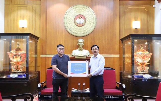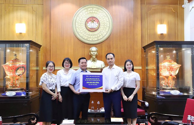 | Công ty TNHH phân phối Tiên Tiến trao số tiền ủng hộ 200 triệu đồng |