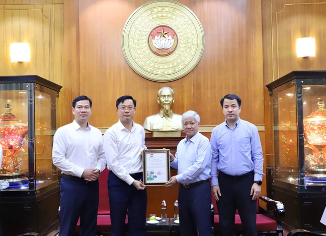 | Ông Đỗ Văn Chiến, Ủy viên Bộ Chính trị, Bí thư Trung ương Đảng, Chủ tịch Ủy ban Trung ương MTTQ Việt Nam trao thư cảm ơn Tập đoàn Công nghiệp Than - Khoáng sản Việt Nam |