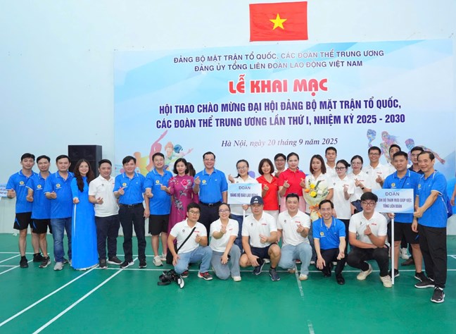 (Mặt trận) - Sáng 20/9, tại Trung tâm Thể thao Ba Đình (Hà Nội), Đảng ủy Tổng Liên đoàn Lao động Việt Nam (LĐLĐVN) tổ chức lễ khai mạc Hội thao chào mừng Đại hội đại biểu Đảng bộ Mặt trận Tổ quốc (MTTQ), các đoàn thể Trung ương lần thứ I, nhiệm kỳ 2025-2030.