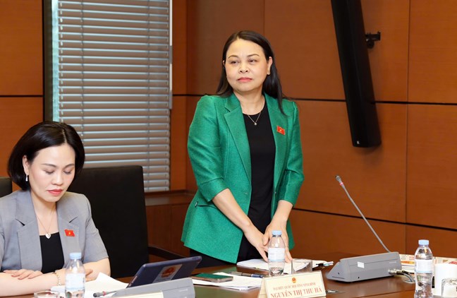 | Phó Chủ tịch - Tổng Thư ký Ủy ban Trung ương MTTQ Việt Nam Nguyễn Thị Thu Hà phát biểu tại Tổ thảo luận |