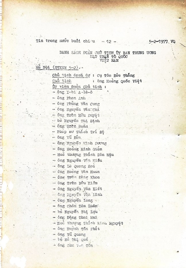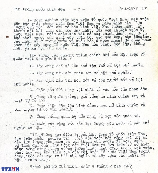 | Đại hội Mặt trận dân tộc thống nhất Việt Nam họp từ ngày 31/1 đến 4/2/1977 |