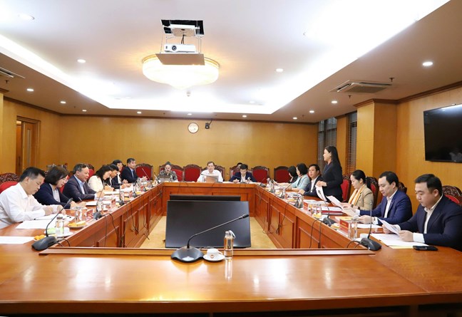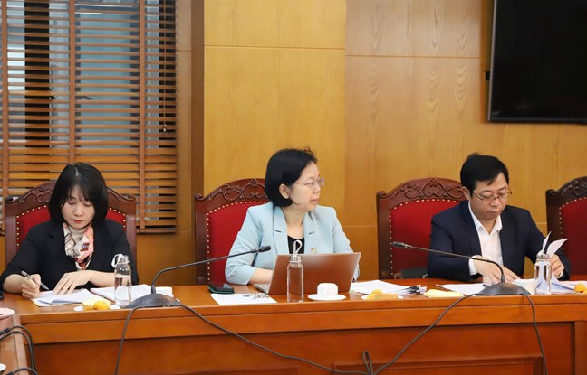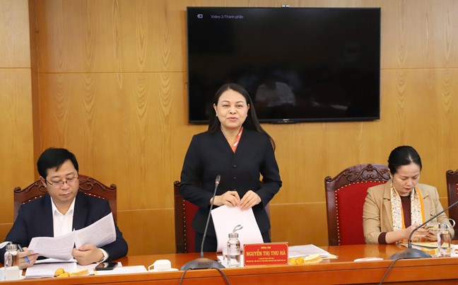 | Phó Chủ tịch - Tổng Thư ký Nguyễn Thị Thu Hà phát biểu tai cuộc làm việc |