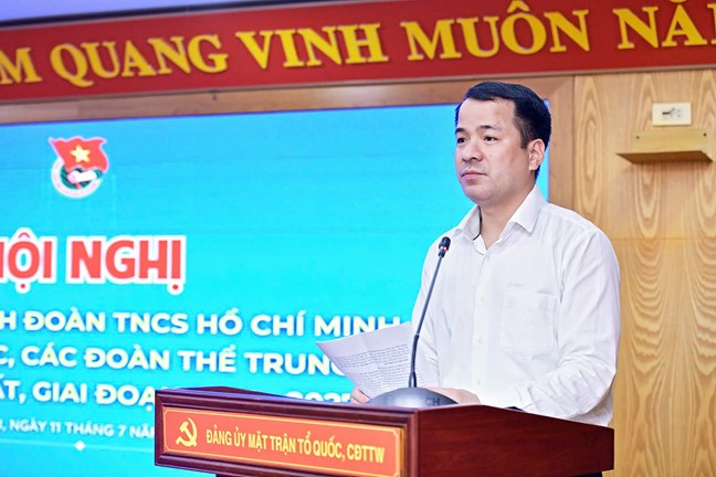 (Mặt trận) - Chiều 11/7, tại Hà Nội, Ban Thường vụ Đoàn TNCS Hồ Chí Minh MTTQ, các đoàn thể Trung ương tổ chức Hội nghị Ban Chấp hành Đoàn MTTQ, các đoàn thể Trung ương lần thứ I, giai đoạn 2025-2027. Ông Ngô Văn Cương, Phó Bí thư Đảng ủy MTTQ, các đoàn thể Trung ương dự và phát biểu tại Hội nghị.