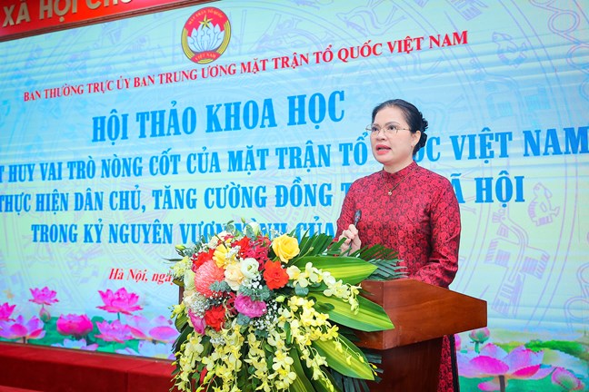 Phát biểu khai mạc Hội thảo, Phó Chủ tịch Ủy ban Trung ương MTTQ Việt Nam Hà Thị Nga nhấn mạnh, Mặt trận Dân tộc Thống nhất Việt Nam do Đảng Cộng sản Việt Nam và Chủ tịch Hồ Chí Minh sáng lập, lãnh đạo, trải qua 95 năm hình thành và phát triển với những tên gọi khác nhau, Mặt trận Tổ quốc Việt Nam không ngừng phát huy tinh thần yêu nước, truyền thống đoàn kết của dân tộc Việt Nam - một nhân tố quyết định thắng lợi của sự nghiệp giành độc lập dân tộc, thống nhất đất nước, xây dựng và bảo vệ Tổ quốc.