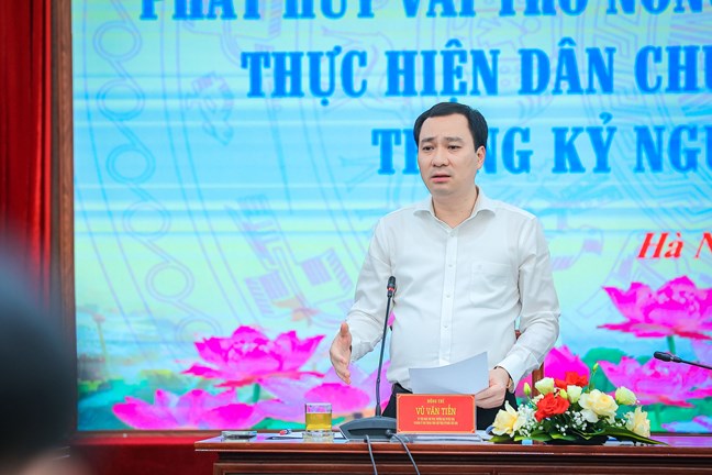 | Ông Vũ Văn Tiến, Ủy viên Đoàn Chủ tịch, Trưởng Ban Tuyên giáo Ủy ban Trung ương MTTQ Việt Nam phát biểu tại Hội thảo |