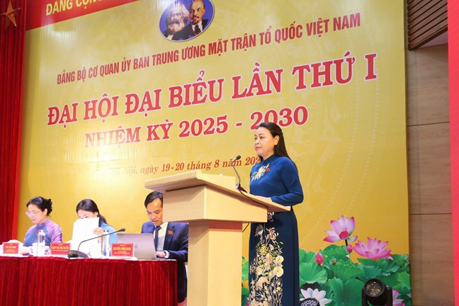 Điều hành phiên thứ nhất của Đại hội, Phó Chủ tịch UBTƯ MTTQ Việt Nam Hà Thị Nga đề nghị các đại biểu tham dự Đại hội nêu cao tinh thần trách nhiệm, phát huy dân chủ, trí tuệ tập thể, đóng góp nhiều ý kiến sâu sắc, chất lượng vào các nội dung của Đại hội; tập trung vào nội dung trọng tâm, chủ đề Đại hội, góp phần tạo nên thành công của Đại hội đại biểu Đảng bộ cơ quan Ủy ban Trung ương MTTQ Việt Nam lần thứ I, nhiệm kỳ 2025-2030.