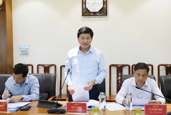 | Ông Mùa A Vảng, Ủy viên dự khuyết Trung ương Đảng, Phó Bí thư, Chủ tịch Ủy ban MTTQ Việt Nam tỉnh Điện Biên phát biểu tại cuộc làm việc |