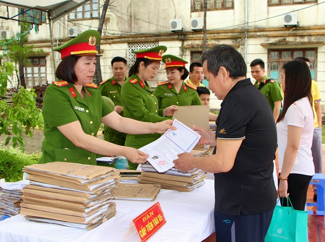 | Cán bộ Trại giam Hoàng Tiến làm thủ tục cấp tiền tàu xe cho phạm nhân được đặc xá trở về quê |