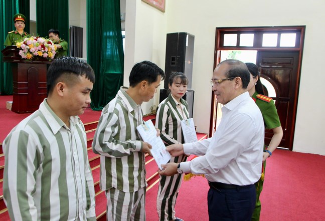 Phó Chủ tịch Hoàng Công Thủy nêu rõ, những phạm nhân được đặc xá trở về đoàn tụ với gia đình, với quê hương trong dịp này cần thấy rõ chính sách nhân đạo, sự khoan dung, độ lượng của Đảng, Nhà nước với mọi công dân, có thái độ đúng đắn, không mặc cảm với lỗi lầm đã qua, sớm hoà nhập cộng đồng, ổn định cuộc sống, làm ăn lương thiện...