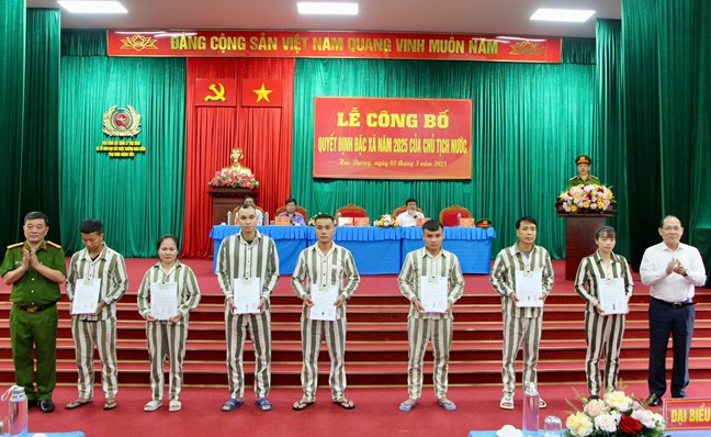 (Mặt trận) - Sáng 1/5, Trại giam Hoàng Tiến (Cục Cảnh sát quản lý trại giam, cơ sở giáo dục bắt buộc, trường giáo dưỡng, Bộ Công an), Trại tạm giam Công an tỉnh Hải Dương tổ chức lễ công bố quyết định đặc xá năm 2025 cho 200 phạm nhân. Phó Chủ tịch Ủy ban Trung ương MTTQ Việt Nam Hoàng Công Thủy dự và trao quyết định đặc xá cho phạm nhân.