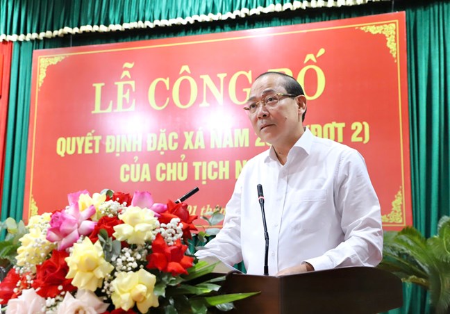Phát biểu tại Lễ Công bố Quyết định, Phó Chủ tịch Ủy ban Trung ương MTTQ Việt Nam Hoàng Công Thủy nhấn mạnh, kế thừa và phát huy truyền thống nhân đạo của dân tộc Việt Nam, trong những năm qua Đảng và Nhà nước ta đã nhiều lần đặc xá tha tù trước thời hạn cho hàng chục vạn phạm nhân trở về với gia đình và xã hội. Từ năm 2009 đến nay, Chủ tịch nước đã quyết định đặc xá cho hơn 104.000 người. Qua theo dõi và báo cáo của các địa phương, hầu hết những người được đặc xá trở về đã nhanh chóng tái hòa nhập cộng đồng, làm ăn lương thiện, có cuộc sống ổn định; nhiều người đã trở thành doanh nhân thành đạt, tích cực tham gia các hoạt động xã hội ở địa phương.