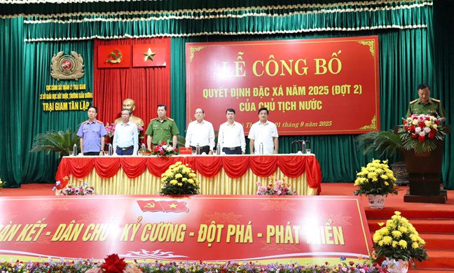 Theo đề nghị của Hội đồng tư vấn đặc xá, Chủ tịch Nước đã ký Quyết định số 1693 ngày 29/8/2025 và Quyết định số 1728 ngày 31/8/2025 đặc xá trước thời hạn cho 14.025 người là những phạm nhân đang chấp hành án phạt tù và những người đang được tạm đình chỉ chấp hành án phạt tù, trong đó Trại giam Tân Lập có 308 phạm nhân (231 nam; 77 nữ) được đặc xá đợt này, tăng 210 phạm nhân so với đợt 30/4/2025 và tăng 262 phạm nhân so với năm 2024.