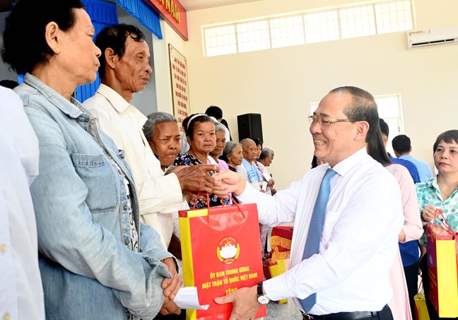 (Mặt trận) - Sáng 9/4, đoàn công tác của Ủy ban Trung ương MTTQ Việt Nam do Phó Chủ tịch Ủy ban Trung ương MTTQ Việt Nam Hoàng Công Thủy làm trưởng đoàn đã đến thăm, chúc Tết Chôl Chnăm Thmây 2026 các vị chức sắc, chức việc, Achar, người có uy tín và gia đình đồng bào Khmer nghèo, gia đình chính sách tại tỉnh Vĩnh Long.