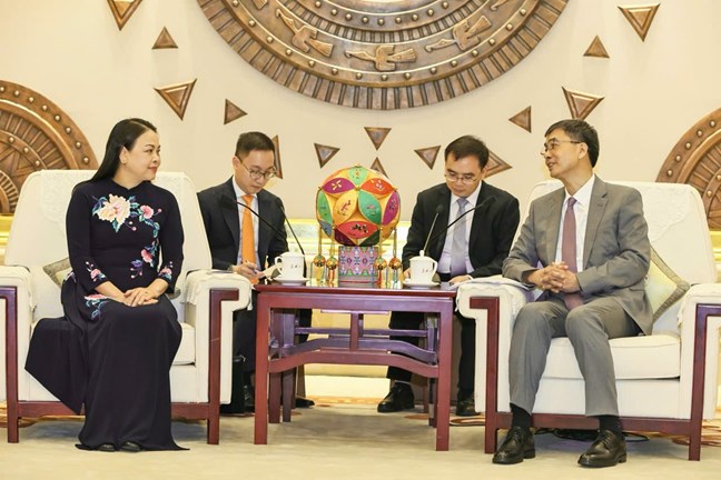 | Phó Chủ tịch - Tổng Thư ký Nguyễn Thị Thu Hà hội kiến Bí thư Khu ủy Quảng Tây, Trung Quốc |