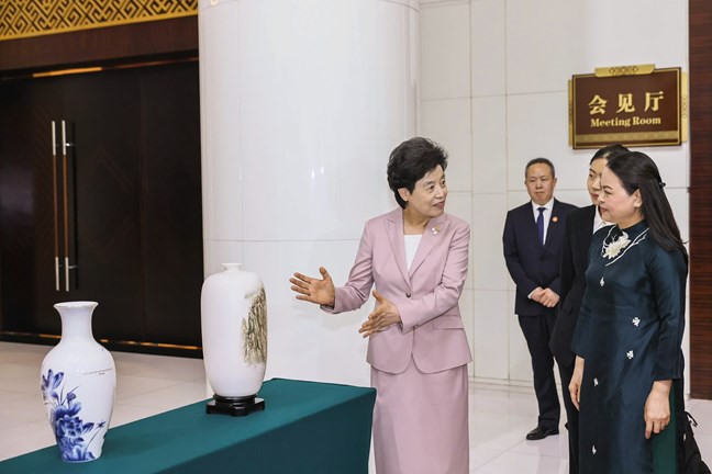Phó Chủ tịch - Tổng Thư ký Nguyễn Thị Thu Hà tin tưởng mối quan hệ giữa hai tổ chức ngày càng phát triển, chúc cho mối quan hệ Đối tác hợp tác chiến lược toàn diện, thúc đẩy xây dựng Cộng đồng chia sẻ tương lai Việt Nam - Trung Quốc ngày càng phát triển.