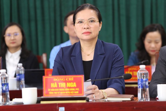 | Bà Hà Thị Nga - Ủy viên Ban Chấp hành Trung ương Đảng, Phó Bí thư Thường trực Đảng ủy MTTQ, các đoàn thể Trung ương, Bí thư Đảng ủy Cơ quan Ủy ban Trung ương MTTQ Việt Nam, Phó Chủ tịch - Tổng Thư ký Ủy ban Trung ương MTTQ Việt Nam tại Hội nghị |