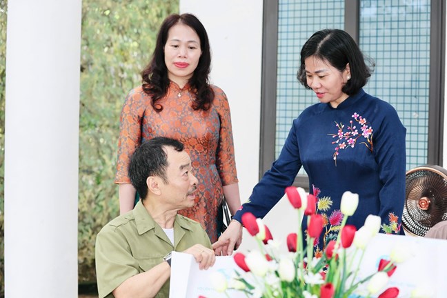 Ủy viên TƯ Đảng, Phó Chủ tịch UBTƯ MTTQ Việt Nam, Chủ tịch Hội LHPN Việt Nam Nguyễn Thị Tuyến thăm hỏi, động viên và tặng quà thương binh đang được chăm sóc tại Trung tâm Nuôi dưỡng và điều dưỡng người có công số 4 Hà Nội