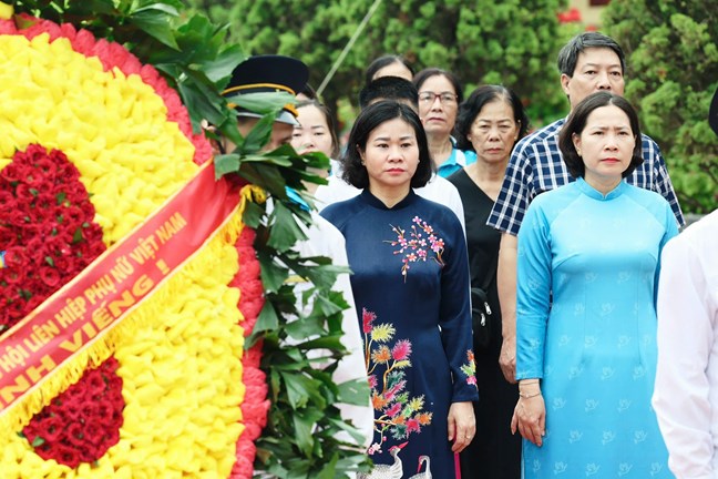 "Sự hy sinh cao cả của các bác, các chú, các anh để đổi lại độc lập, tự do cho Tổ quốc hôm nay sẽ mãi được thế hệ các thế hệ cán bộ, hội viên phụ nữ cả nước ghi nhớ và tiếp nối truyền thống yêu nước, tiếp tục xây dựng cho quê hương đất nước giàu đẹp", bà Nguyễn Thị Tuyến nhấn mạnh.