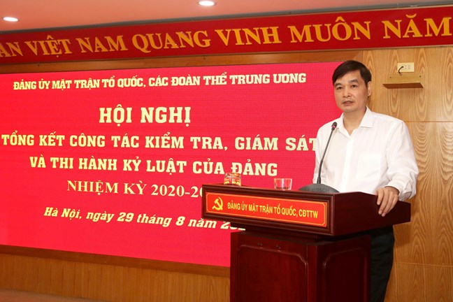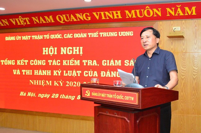 Phát biểu tại Hội nghị, đồng chí Trần Thắng, Phó Bí thư Đảng ủy MTTQ, các đoàn thể Trung ương nhấn mạnh, việc Bộ Chính trị quyết định lập Đảng bộ Mặt trận Tổ quốc, các đoàn thể Trung ương đã tạo lập cơ chế lãnh đạo toàn diện, tập trung, thống nhất của Đảng đối với MTTQ, các tổ chức chính trị - xã hội, các hội quần chúng do Đảng, Nhà nước giao nhiệm vụ. Được sự lãnh đạo, chỉ đạo kịp thời của Bộ Chính trị, Ban Bí thư, Ủy ban Kiểm tra Trung ương và sự nỗ lực, quyết tâm cao của các cấp ủy, ủy ban kiểm tra trực thuộc, công tác kiểm tra, giám sát và thi hành kỷ luật đảng của Đảng bộ Mặt trận Tổ quốc, các đoàn thể Trung ương nhiệm kỳ 2020 - 2025 đã đạt được nhiều kết quả quan trọng.