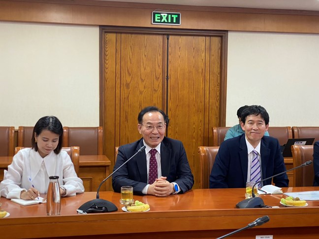 | Ông Kim Tai-gi (ngồi giữa) tại buổi tiếp. Ảnh: Kiều Vũ |