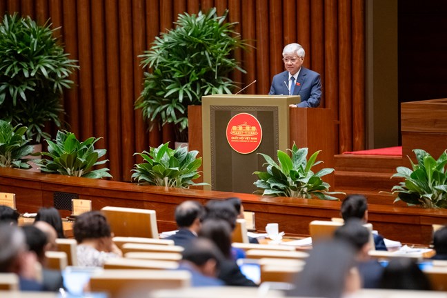 | Ông Đỗ Văn Chiến, Ủy viên Bộ Chính trị, Bí thư Trung ương Đảng, Chủ tịch Ủy ban Trung ương MTTQ Việt Nam trình bày báo cáo tóm tắt tiếp thu, chỉnh lý và hoàn thiện dự thảo Luật trước Quốc hội |