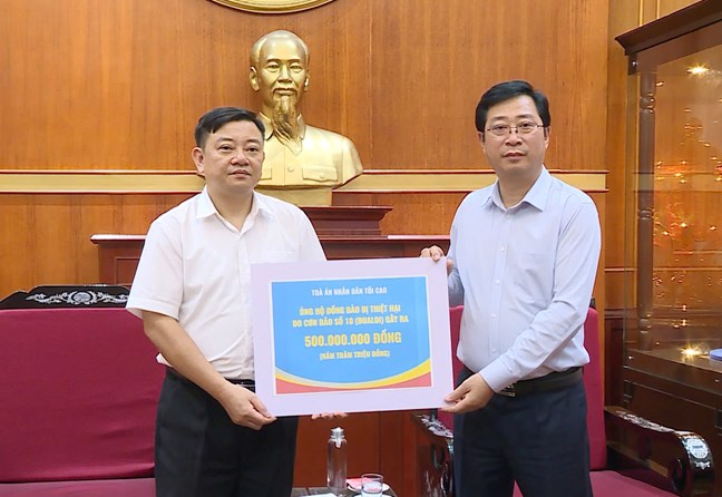 Trao số tiền ủng hộ 500 triệu đồng tới UBTƯ MTTQ Việt Nam, ông Phạm Văn Nhạ, Phó Chánh Văn phòng Tòa án nhân dân tối cao cho biết, hưởng ứng lời kêu gọi của Đoàn Chủ tịch UBTƯ MTTQ Việt Nam về vận động ủng hộ đồng bào khắc phục thiệt hại do cơn bão số 10 gây ra, mỗi công chức, viên chức, người lao động Tòa án nhân dân tối cao đã cùng chung tay quyên góp, ủng hộ kinh phí với mong muốn hỗ trợ người dân tại các khu vực chịu ảnh hưởng nặng nề do bão lũ sớm vượt qua khó khăn, ổn định cuộc sống.