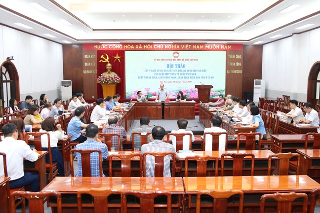 Tại Hội thảo, các đại biểu đã tham gia thảo luận, đóng góp ý kiến tập trung về các nội dung tại dự án Luật sửa đổi, bổ sung một số điều của Luật Mặt trận Tổ quốc Việt Nam, Luật Thanh niên, Luật Công đoàn, Luật thực hiện dân chủ ở cơ sở, trong đó cho ý kiến về một số vấn đề qua tổng hợp ý kiến còn nổi lên một số băn khoăn, cần thống nhất nhận thức và cách thức thể hiện, quy định. Đa số các đại biểu đồng tình với việc sửa đổi, bổ sung xây dựng các Luật, đáp ứng yêu cầu sắp xếp, tinh gọn cơ quan Mặt trận Tổ quốc Việt Nam, các tổ chức chính trị - xã hội, các hội quần chúng do Đảng và Nhà nước giao nhiệm vụ.