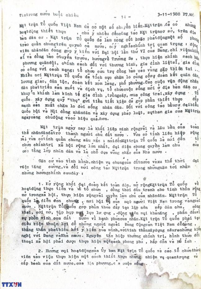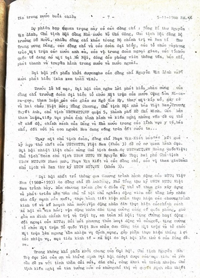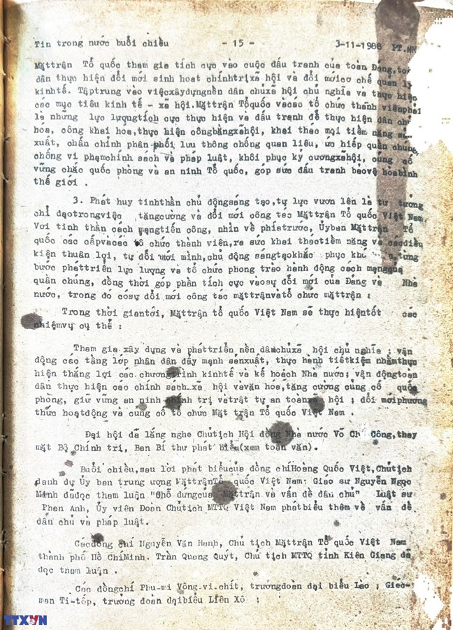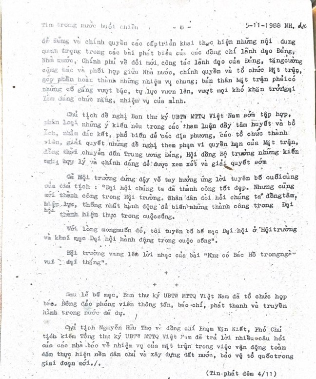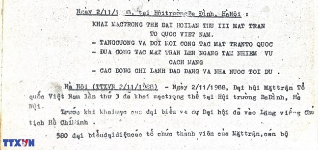 * Bài viết của Thông tấn xã Việt Nam (số 310-TTX), thứ bẩy, ngày 05/11/1988 về tuyên truyền Đại hội Mặt trận Tổ quốc Việt Nam khóa III kết thúc tốt đẹp