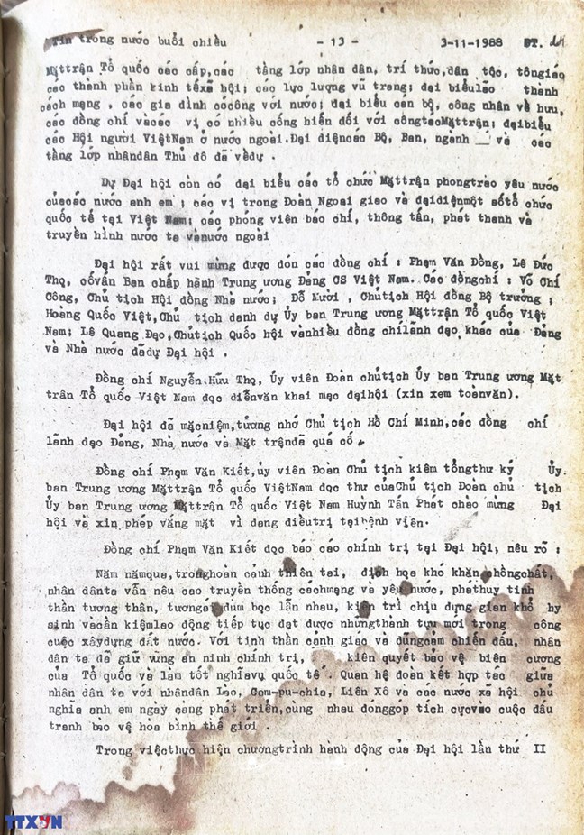 * Bài viết của Thông tấn xã Việt Nam (số 308-TTX), ngày 03/11/1988 về phiên Khai mạc trọng thể Đại hội lần thứ III Mặt trận Tổ quốc Việt Nam