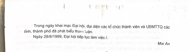 * Bài viết của Thông tấn xã Việt Nam (số 240-TTX), ngày 28/8/1999 về Phiên Bế mạc Đại hội đại biểu toàn quốc Mặt trận Tổ quốc Việt Nam lần thứ V