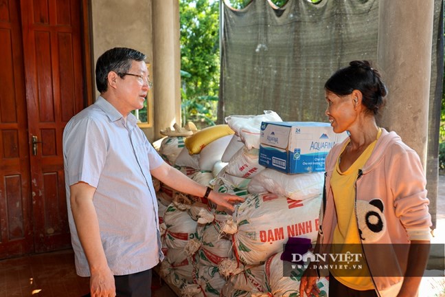 | Đồng chí Lương Quốc Đoàn – Ủy viên BCH Trung ương Đảng, Phó Chủ tịch Ủy ban Trung ương MTTQ Việt Nam, Chủ tịch Trung ương Hội Nông dân Việt Nam đã đến thăm hỏi, nắm tình hình, trao quà cho hội viên Hoàng Văn Ngôn ở xã Yên Bình, tỉnh Lạng Sơn bị thiệt hại nặng sau bão lũ. Ảnh: Nguyễn Chương |