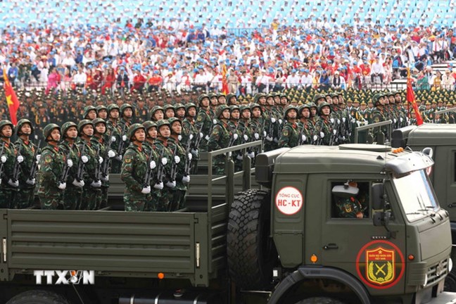 Các khối diễu binh oai hùng hành tiến biểu tượng cho Quân đội Nhân dân Việt Nam cách mạng, chính quy, tinh nhuệ, hiện đại, sẵn sàng chiến đấu, bảo vệ vững chắc độc lập, chủ quyền lãnh thổ của Tổ quốc.