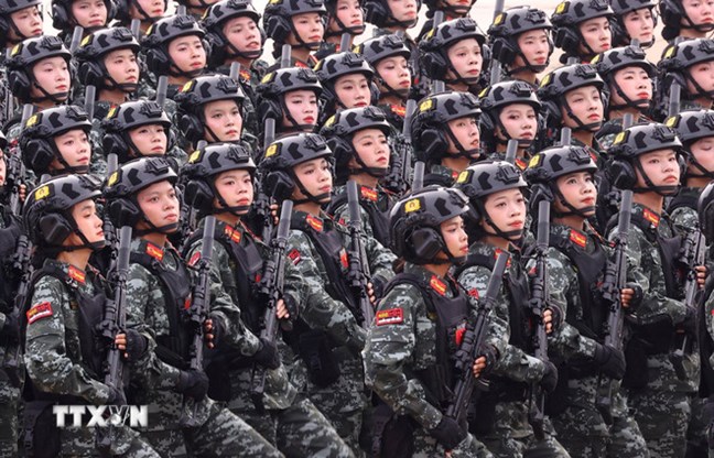 | Khối nữ chiến sỹ Cảnh sát đặc nhiệm. (Ảnh: TTXVN) |