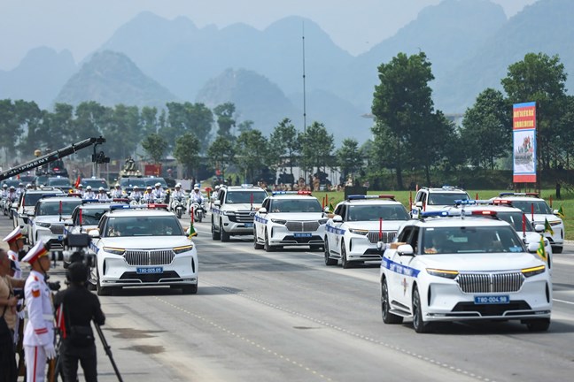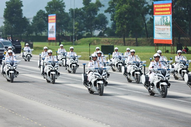 | Lực lượng công an tham gia tổng duyệt diễu binh, diễu hành thực hiện nhiệm vụ A80. Ảnh: Quang Vinh |